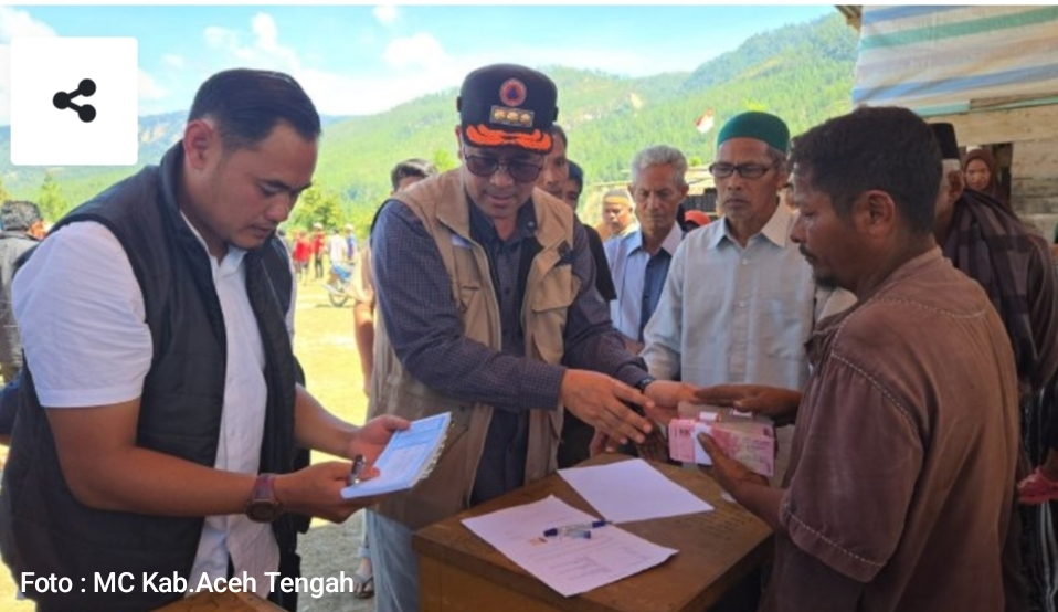 Kabupaten Aceh Tengah ; Suasana haru menyelimuti Kemukiman Wih Dusun Jamat, Kecamatan Linge, Kabupaten Aceh Tengah. Di tengah duka mendalam pascabencana banjir bandang dan longsor yang meluluhlantakkan Kampung Kutereje, secercah harapan mulai tumbuh. Bupati Aceh Tengah, Haili Yoga, turun langsung membayarkan ganti rugi tanah yang akan digunakan sebagai lokasi relokasi permanen bagi warga terdampak, Selasa (23/12/2025).