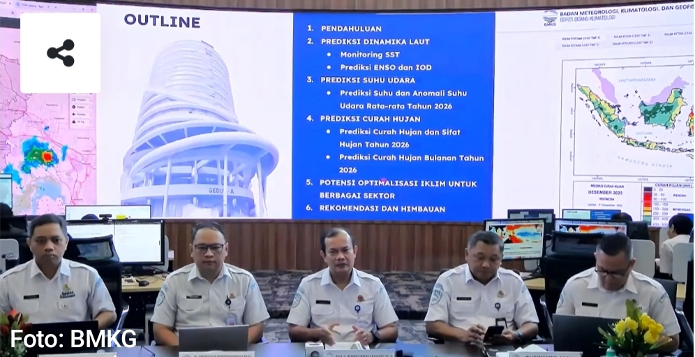 Proyeksi tersebut disampaikan Deputi Bidang Klimatologi BMKG, Ardhasena Sopaheluwakan, dalam jumpa pers Climate Outlook 2026 di Jakarta, Selasa (23/12/2025). Menurut Ardhasena, kondisi tersebut mencerminkan stabilitas iklim nasional seiring melemahnya anomali iklim global serta masuknya fase netral pada dinamika laut yang memengaruhi sistem iklim regional.