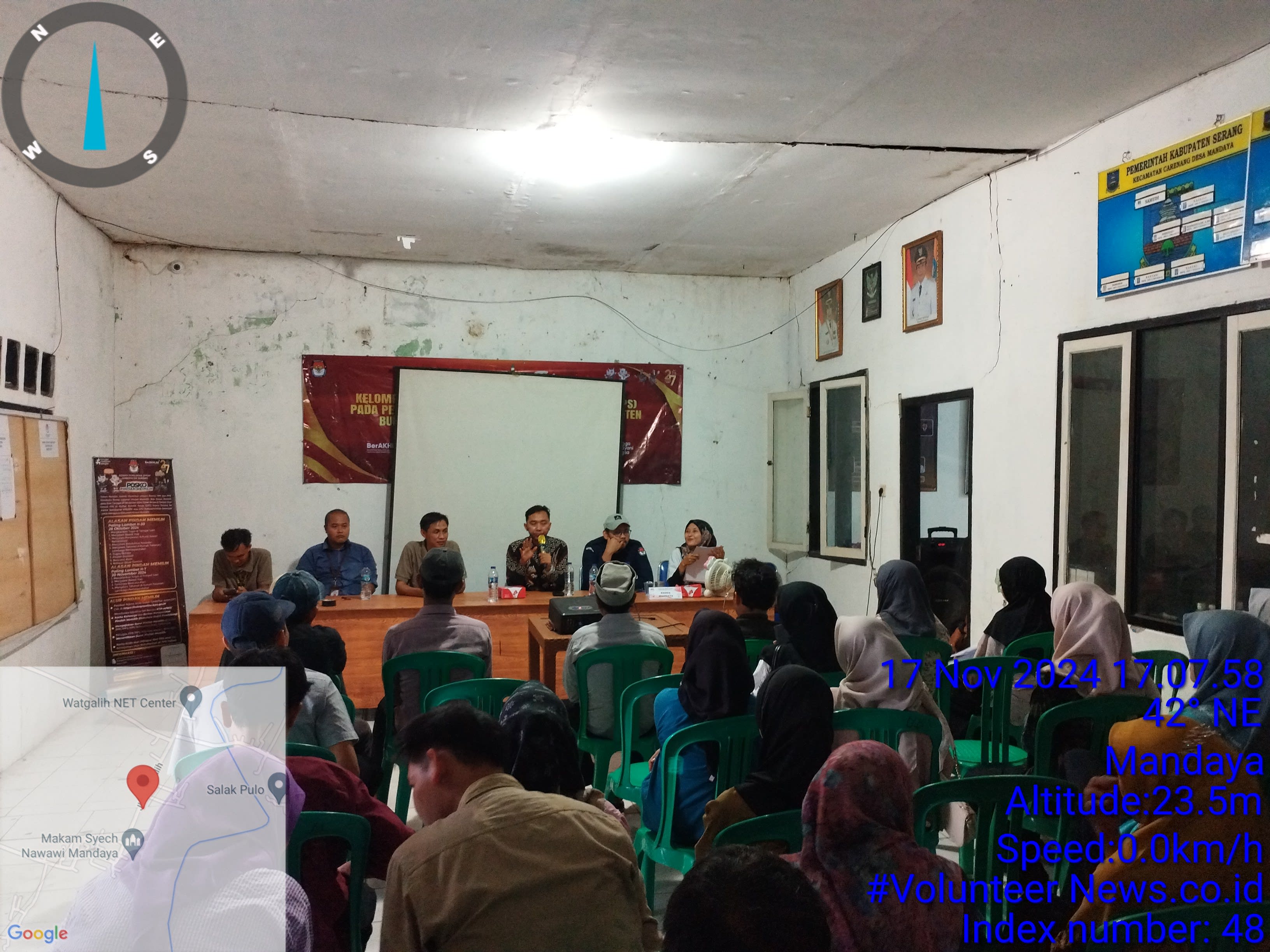 Kab.Serang ; Panitia Pemungutan Suara (PPS) Desa Mandaya Kecamatan Carenang Kabupaten Serang Adakan Bimbingan Teknis (Bimtek) bagi Anggota Kelompok Penyelenggara Pemungutan Suara (KPPS) Desa Mandaya yang terbagi di 7 Tempat Pemungutan Suara (TPS) pada Pilkada Calon Gubernur Banten, Wakil Gubernur Banten dan Calon Bupati Serang wakil Calon Bupati Serang Tahun 2024, yang bertempat di Sekretariat PPS Desa Mandaya