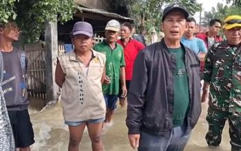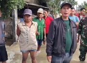 Sukri AR Kepala Desa (Kades) Binuang Kecamatan Binuang kabupaten Serang didampingi Nurul anggota Polsek Carenang meninjau langsung dan memberikan bantuan untuk warga korban banjir di Kampung Careme.