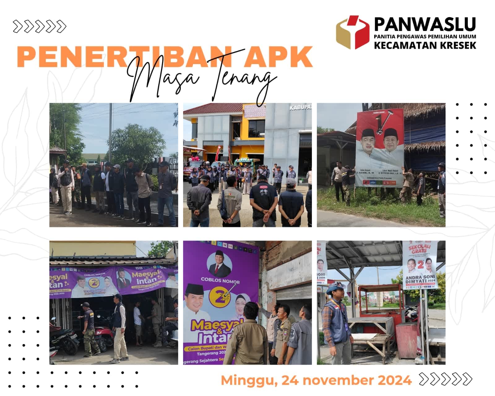 Sekedar untuk diketahui sempat ramai di pemberitaan media online dua oknum Kepala Desa (Kades) yakni Kades Kresek dan Kades Patrasana Kecamatan Kresek Kabupaten Tangerang Provinsi Banten diduga terindikasi mendukung salah satu Calon Bupati Tangerang, Calon Wakil Bupati Tangerang dan Calon Gubernur Banten, Calon Wakil Gubernur Banten di Pilkada 2024 ini, dengan memakai atribut Rompi Calon nomor urut 2 (dua) di muka publik atau umum