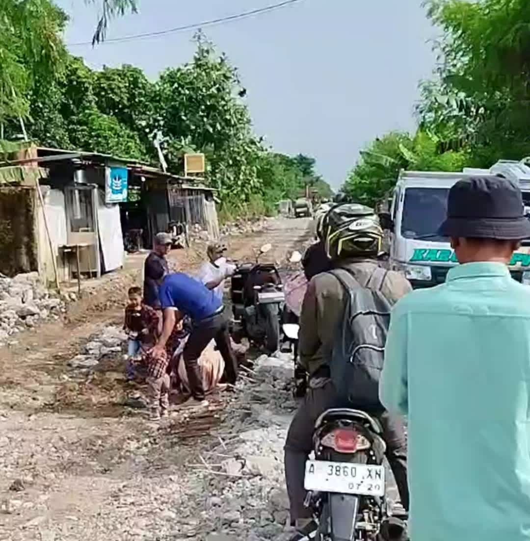Kab.Tangerang ; Warga pengendara sepeda motor baru-baru ini jadi korban Kecelakaan di proyek Rehabilitasi Jalan Raya Jenggot – Kresek Kecamatan Gunung Kaler Kabupaten Tangerang Provinsi Banten, Kecelakaan pengendara tersebut diduga dikarenakan tersangkut besi yang masih berserakan di lokasi proyek, minimnya rambu dan pengaturan lalu lintas jalan dikeluhkan oleh warga