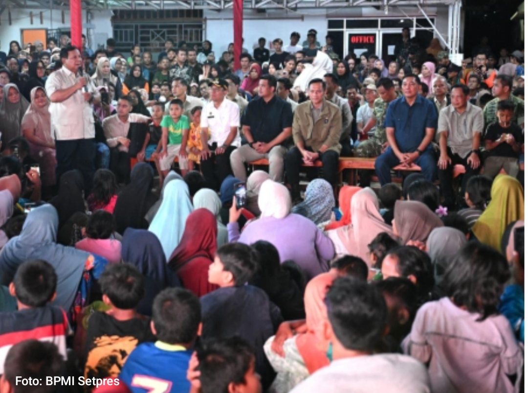 Tanpa kemewahan dan jauh dari seremoni formal, Presiden hadir menyatu dengan masyarakat. Ia datang tanpa protokoler yang kaku, langsung menyapa warga, bersalaman satu per satu, dan duduk bersama mereka di dalam tenda posko. Sambutan hangat pun mengalir spontan, tepuk tangan, senyum tulus, serta tawa anak-anak mewarnai kehadiran Kepala Negara di tengah warga yang masih berjuang memulihkan kehidupan pascabencana.