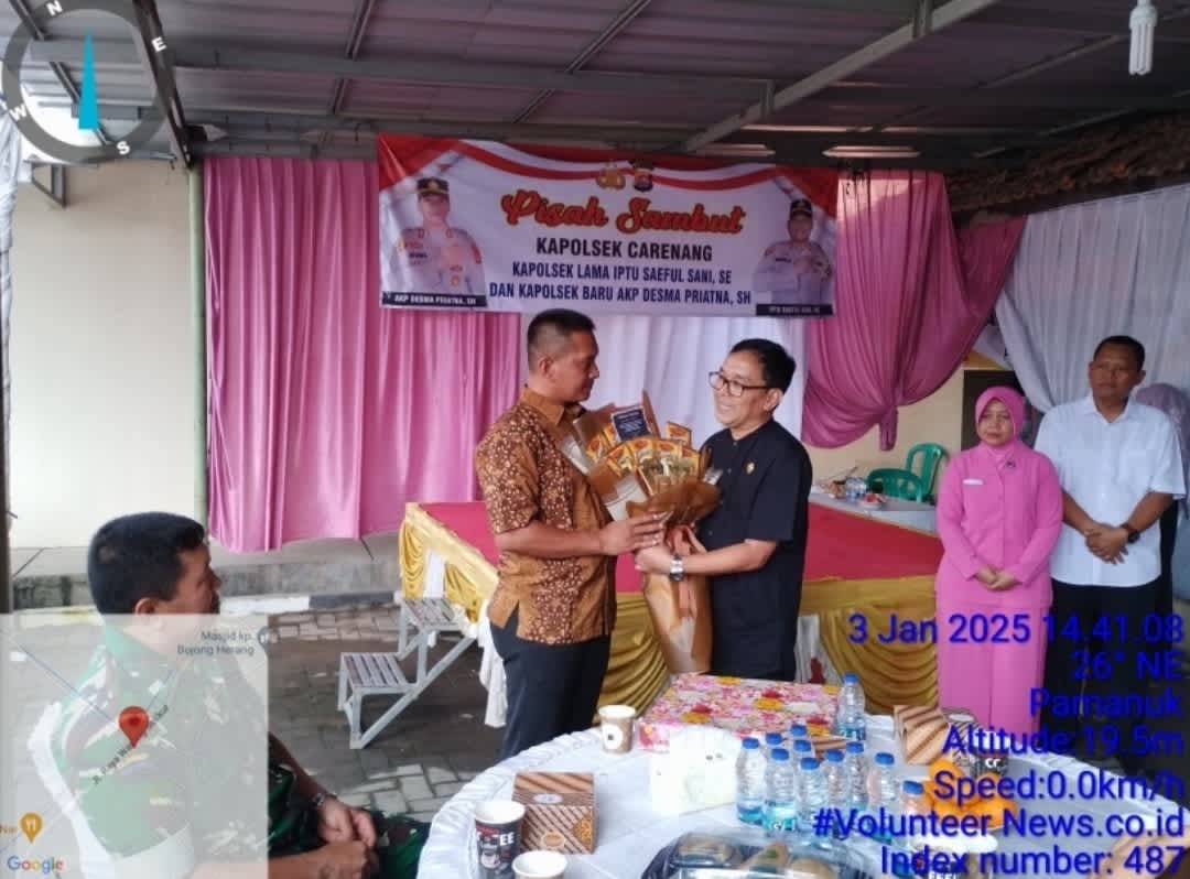 Kab.Serang ; Jumat tanggal 3 Januari 2025 suasana haru bercampur gembira nampak terlihat pada acara pisah sambut Kapolsek Carenang dari Kapolsek lama IPTU Saeful Sani,S.E kepada Kapolsek baru AKP Desma Priatna,S.H,