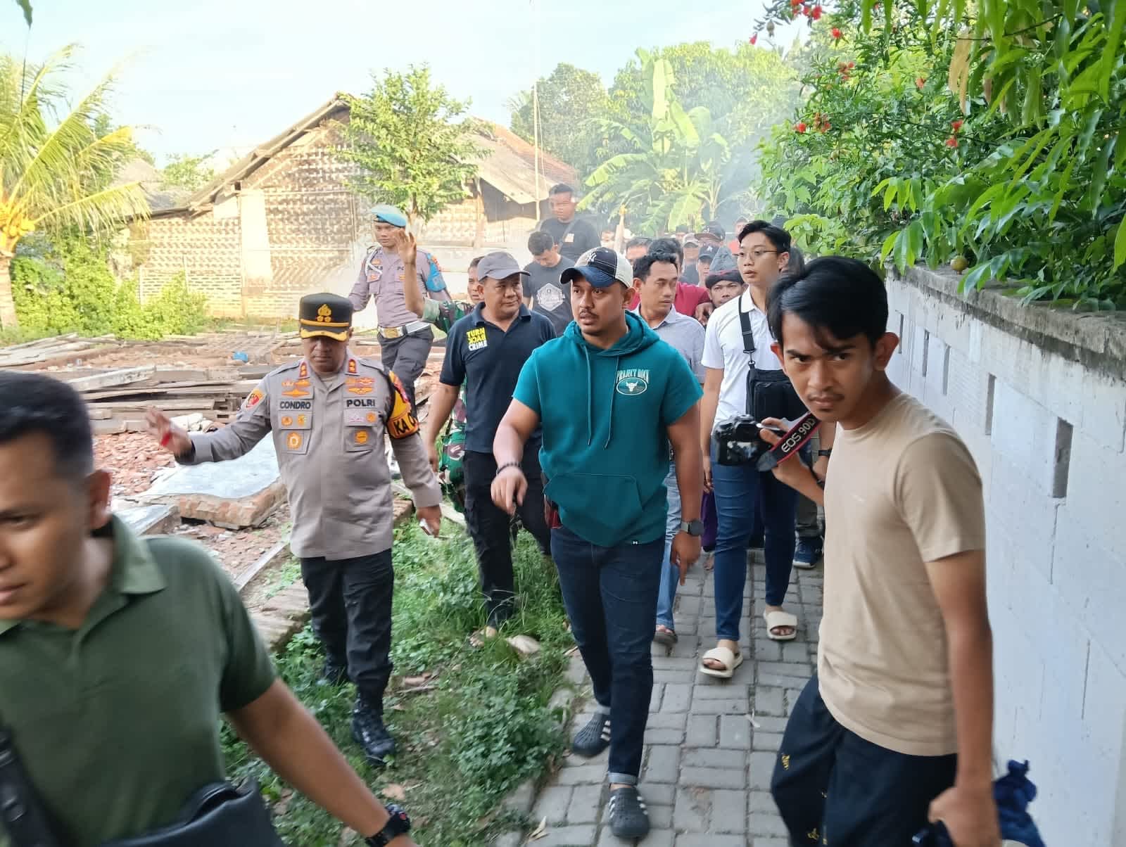 Kapolres mengatakan bahwa pimpinan ponpes berinisial KH telah berhasil diamankan saat bersembunyi di atas plafon rumah warga tidak jauh dari lokasi ponpes Bani Ma’mun Kobak.