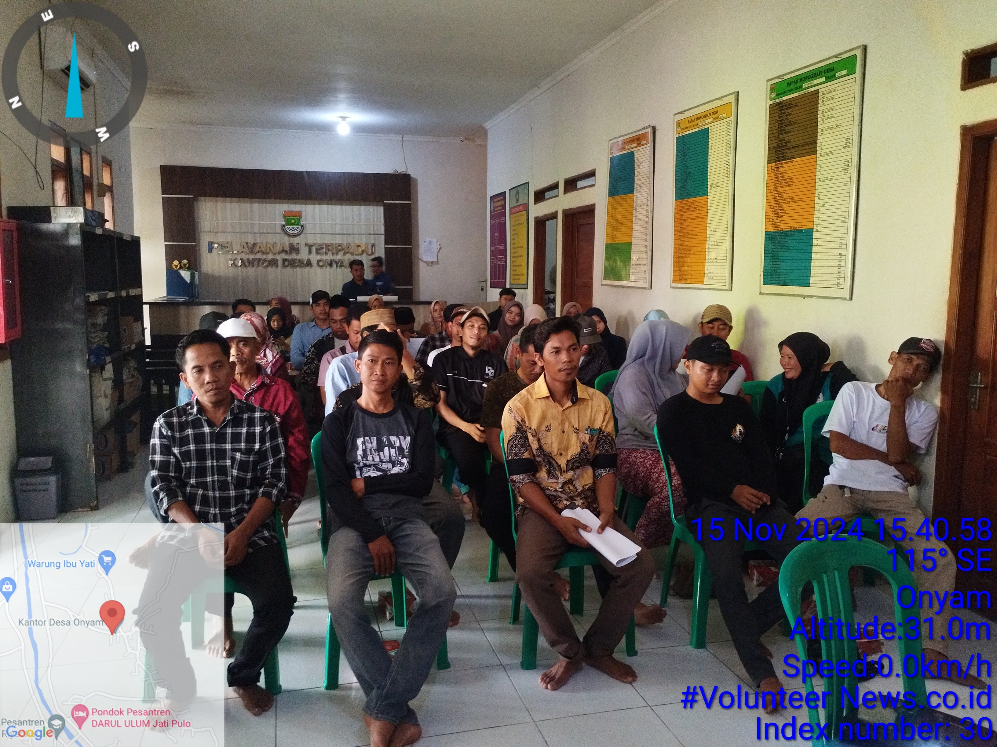 Kab.Tangerang ; Panitia Pemungutan Suara (PPS) Desa Onyam Kecamatan Gunung Kaler Kabupaten Tangerang Provinsi Banten pada tanggal 15 November 2024 melaksanakan kegiatan Bimbingan Teknis (Bimtek) bagi Anggota Kelompok Penyelenggara Pemungutan Suara (KPPS) Desa Onyam pada Pilkada Calon Gubernur Banten, Wakil Gubernur Banten dan Calon Bupati Tangerang, wakil Calon Bupati Tangerang Tahun 2024, yang bertempat di Sekretariat PPS Desa Onyam.
