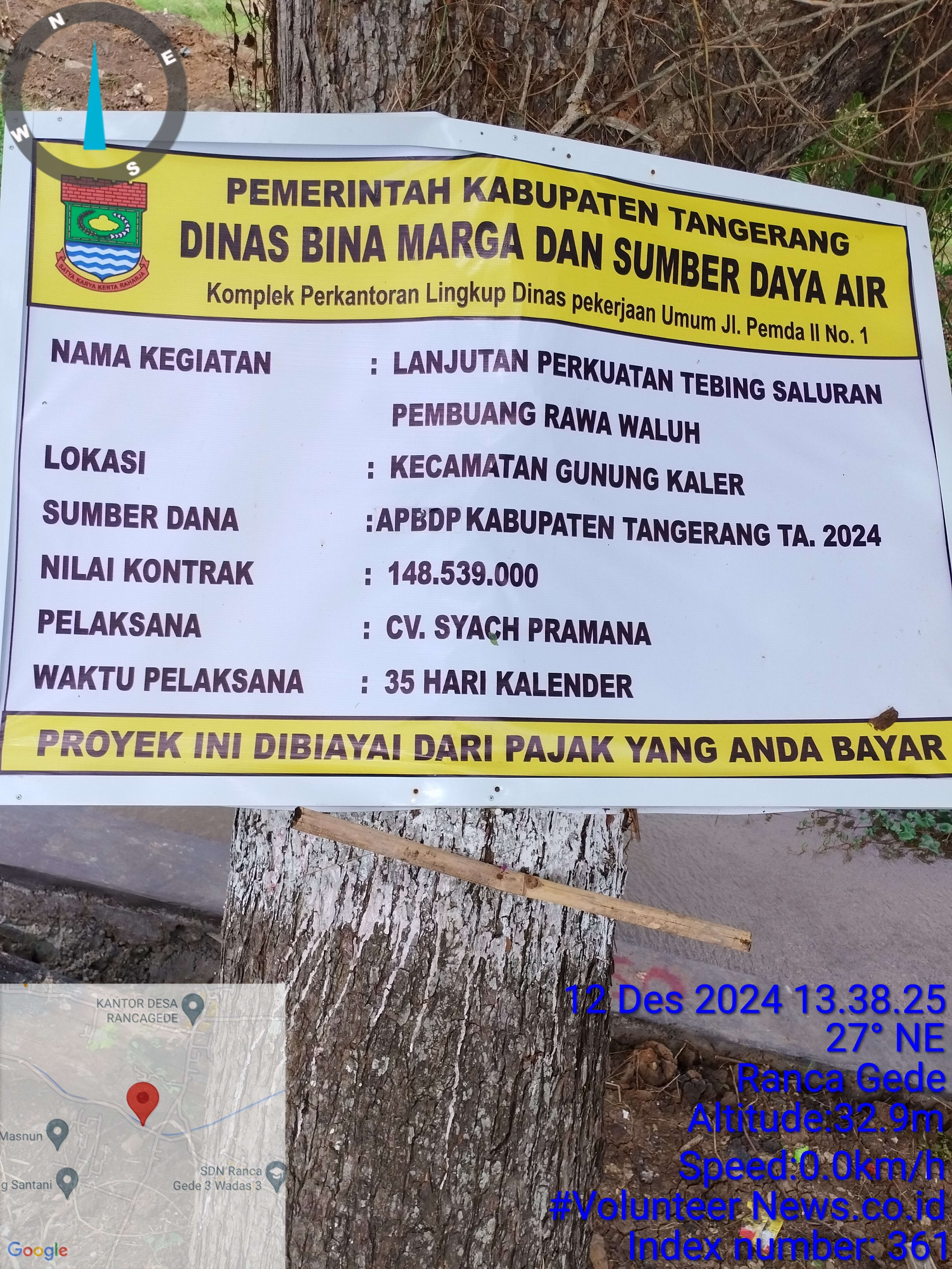 Kab.Tangerang ; Proyek lanjutan perkuatan tebing saluran Pembuang rawa waluh di Desa Rancagede Kecamatan Gunung Kaler Kabupaten Tangerang Provinsi Banten dari Dinas Bina Marga dan Sumber Daya (DBMSDA) yang di kerjakan oleh CV. Syach Pramana dengan nilai Anggaran Rp.148.539.000 ( Seratus empat puluh delapan juta Lima ratus tiga puluh sembilan ribu rupiah) yang bersumber dari APBDP Kabupaten Tangerang Tahun Anggaran 2024, dimana dalam pekerjaannya diduga menuai Kejanggalan yang mana dalam pekerjaan tersebut terjadi penambahan pasangan batu sepanjang 10 meter dan diduga sepatu atau pondasi pasangan batu tidak terlihat